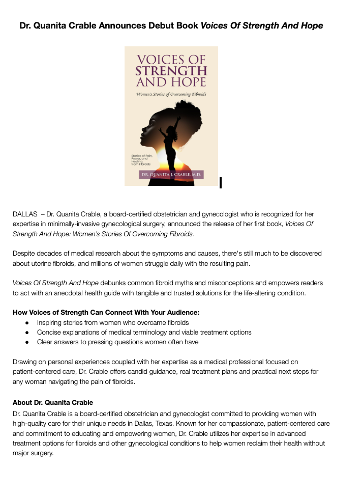 When board-certified obstetrician and gynecologist Dr. Quanita Crable released her new book she sharing her compelling story of providing women with high-quality care for their unique needs across North Texas would require a strategic effort. I worked with Dr. Crable on a multi-channel communications strategy to introduce the book to regional audiences, expand its book’s reach and to help create momentum.
